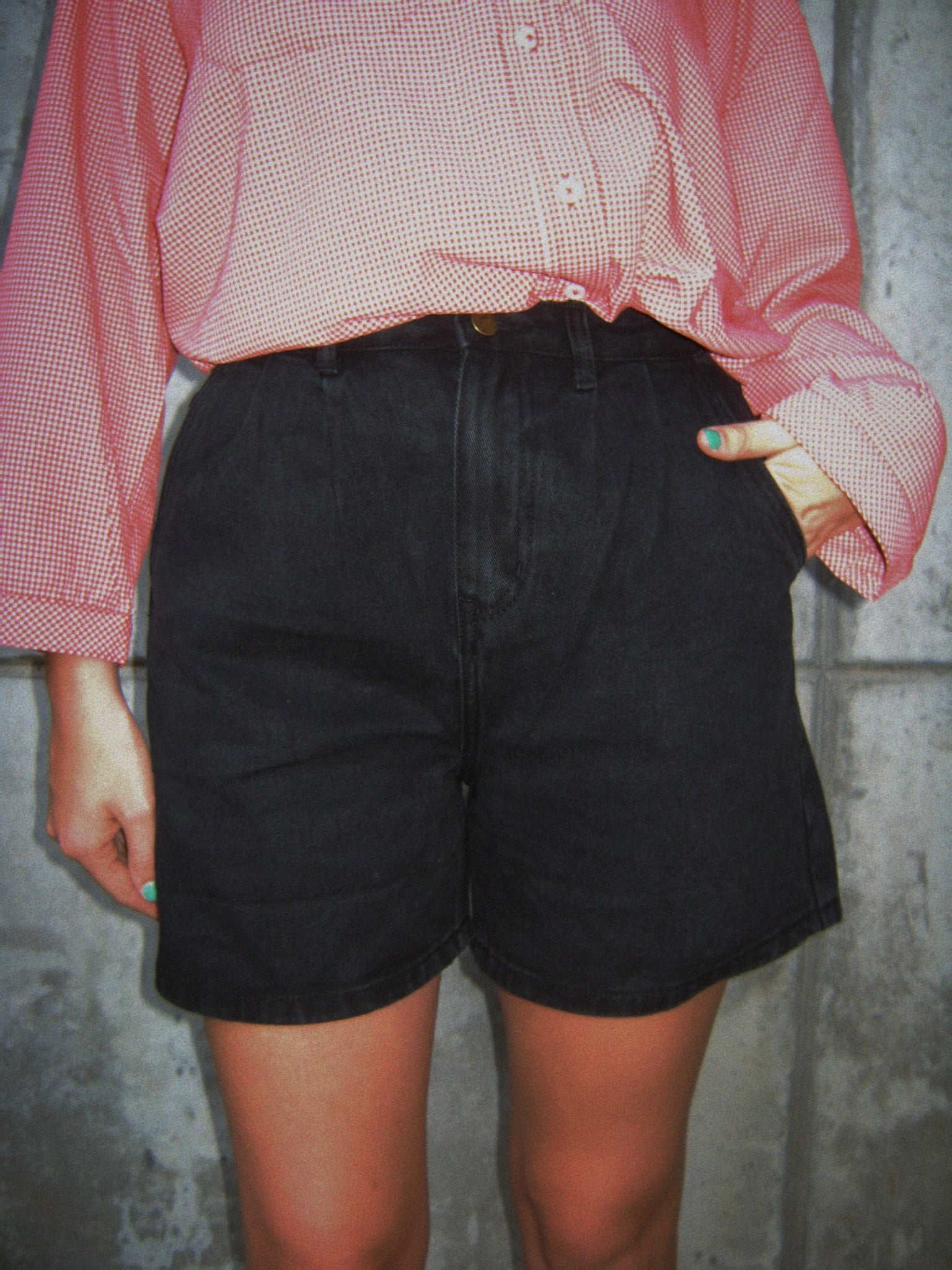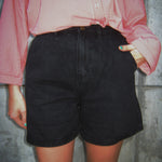 Black denim pleated shorts