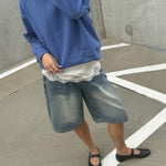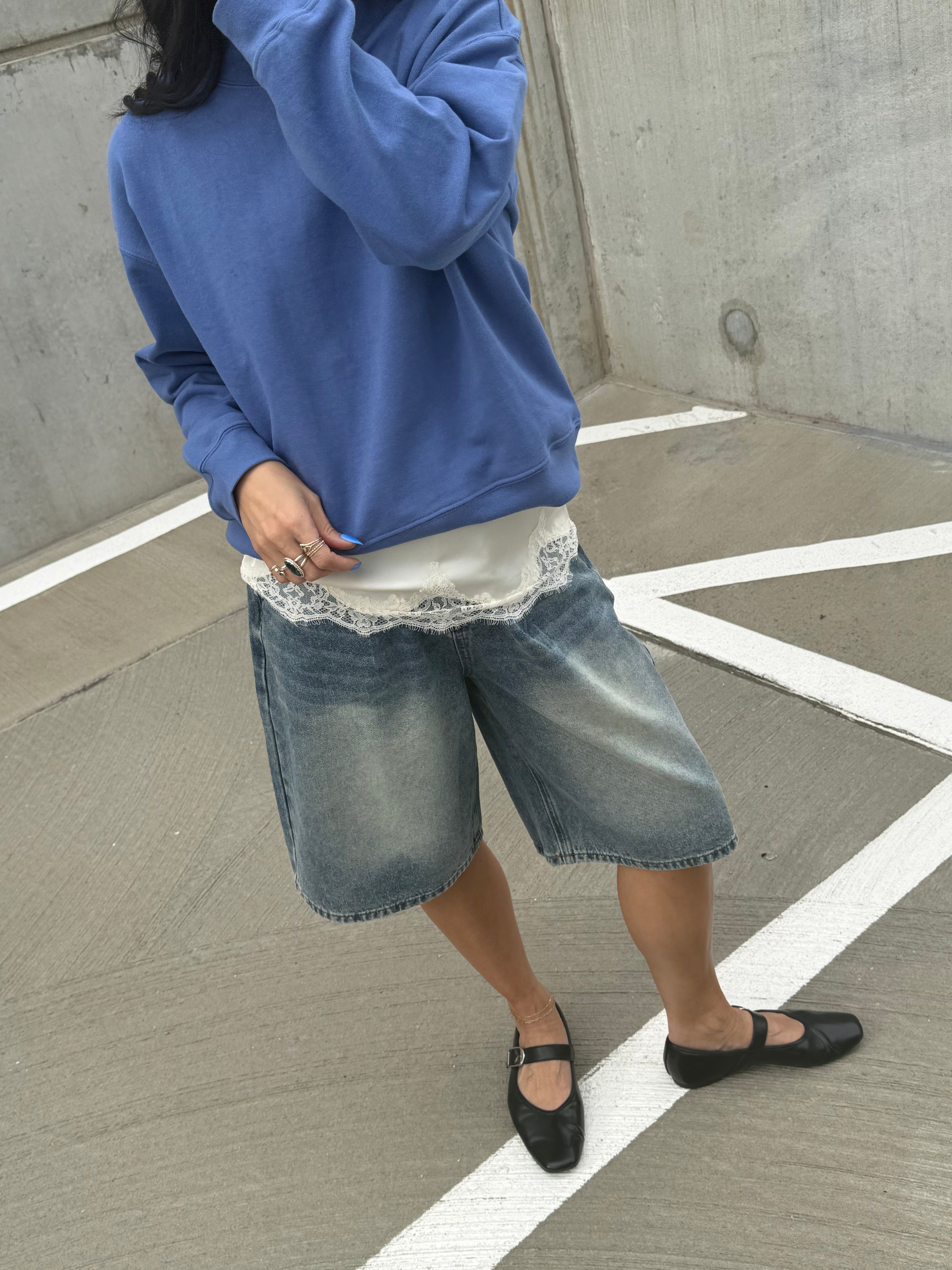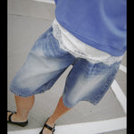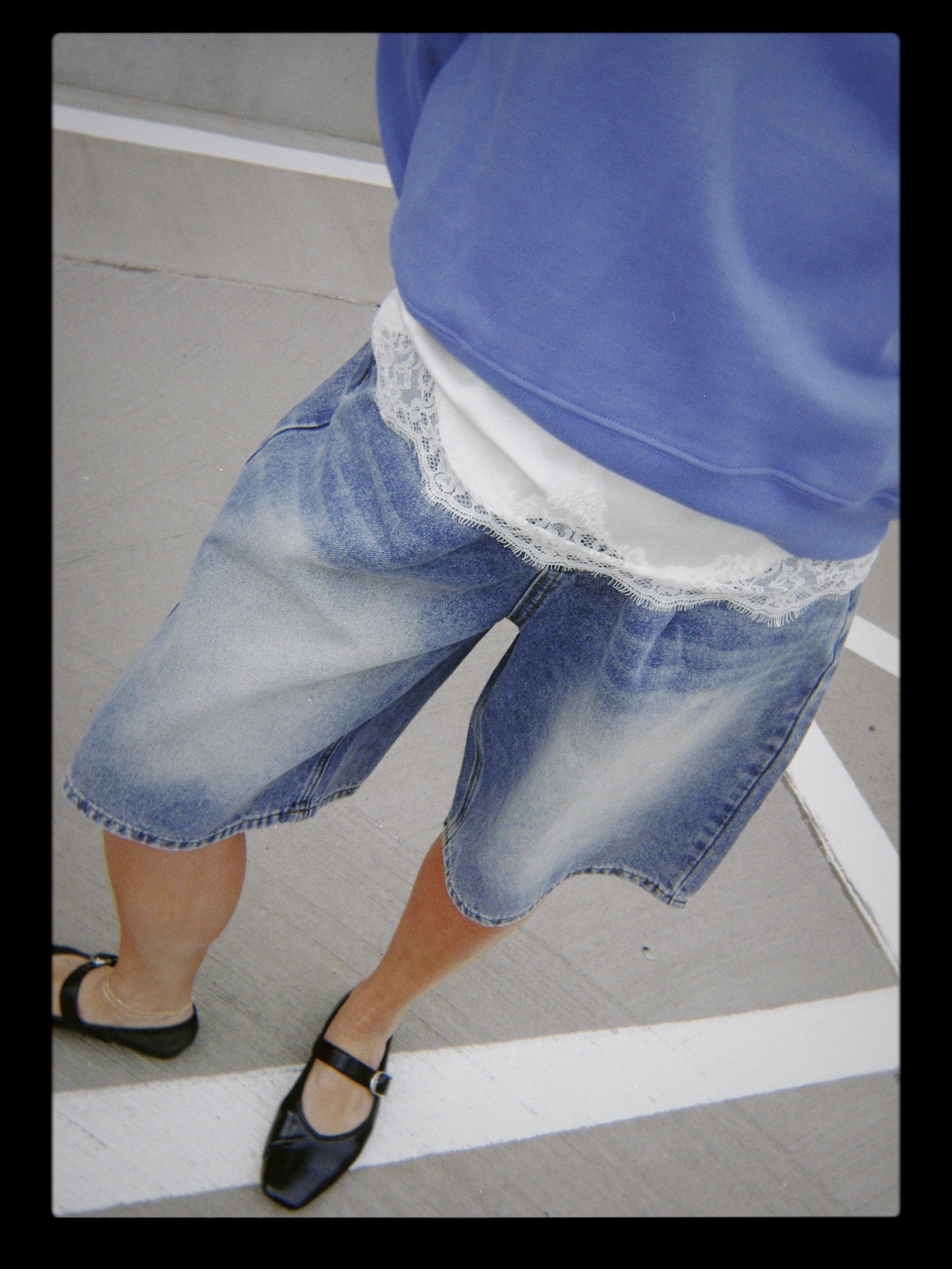 The Marla Shorts are tailored from washed denim and defined by front pleats that create a structured, wide-leg silhouette. Finished with a button and hidden zipper closure, belt loops, and functional front and back pockets. Knee-length for an elevated, relaxed proportion.