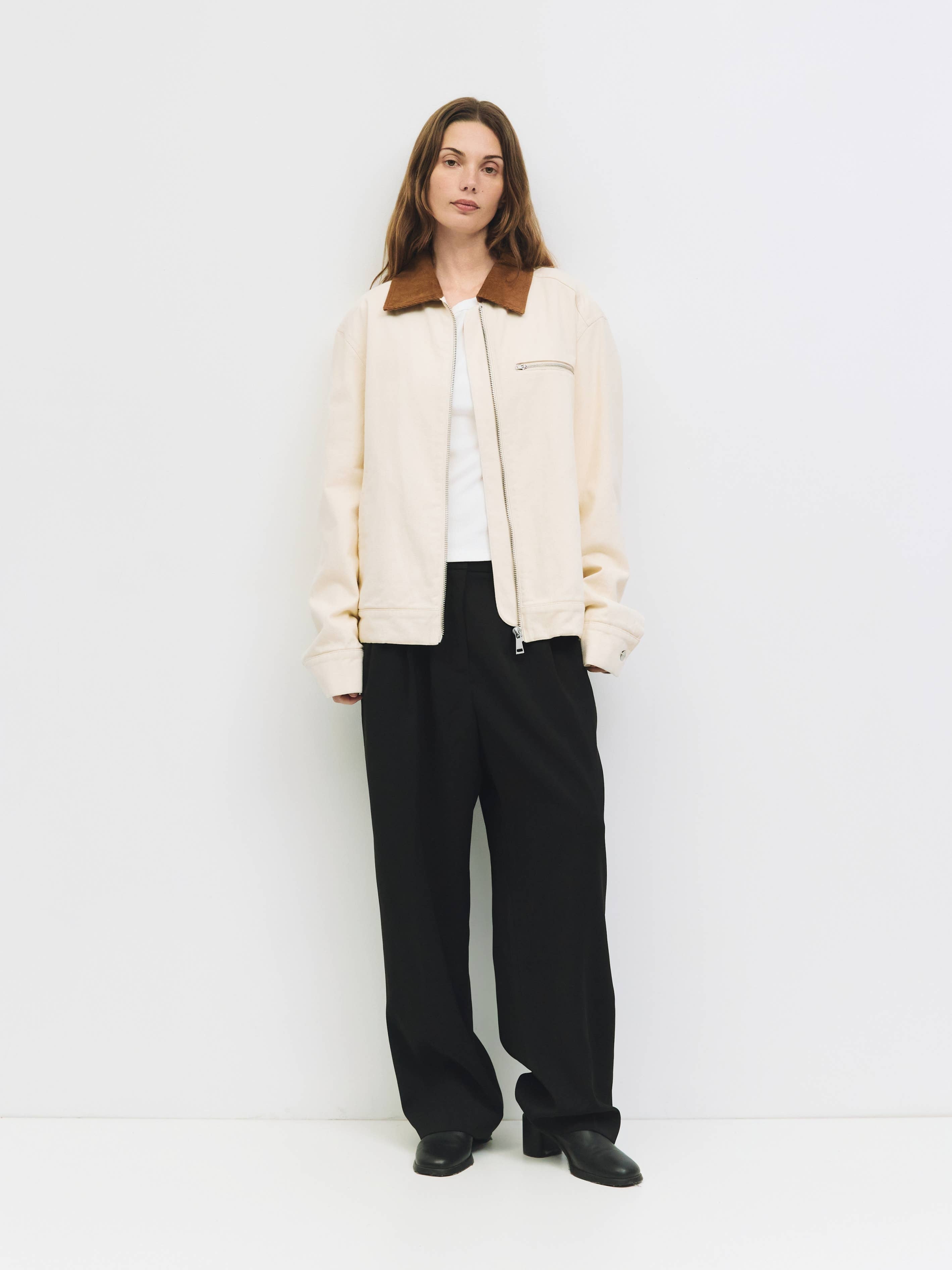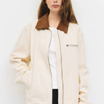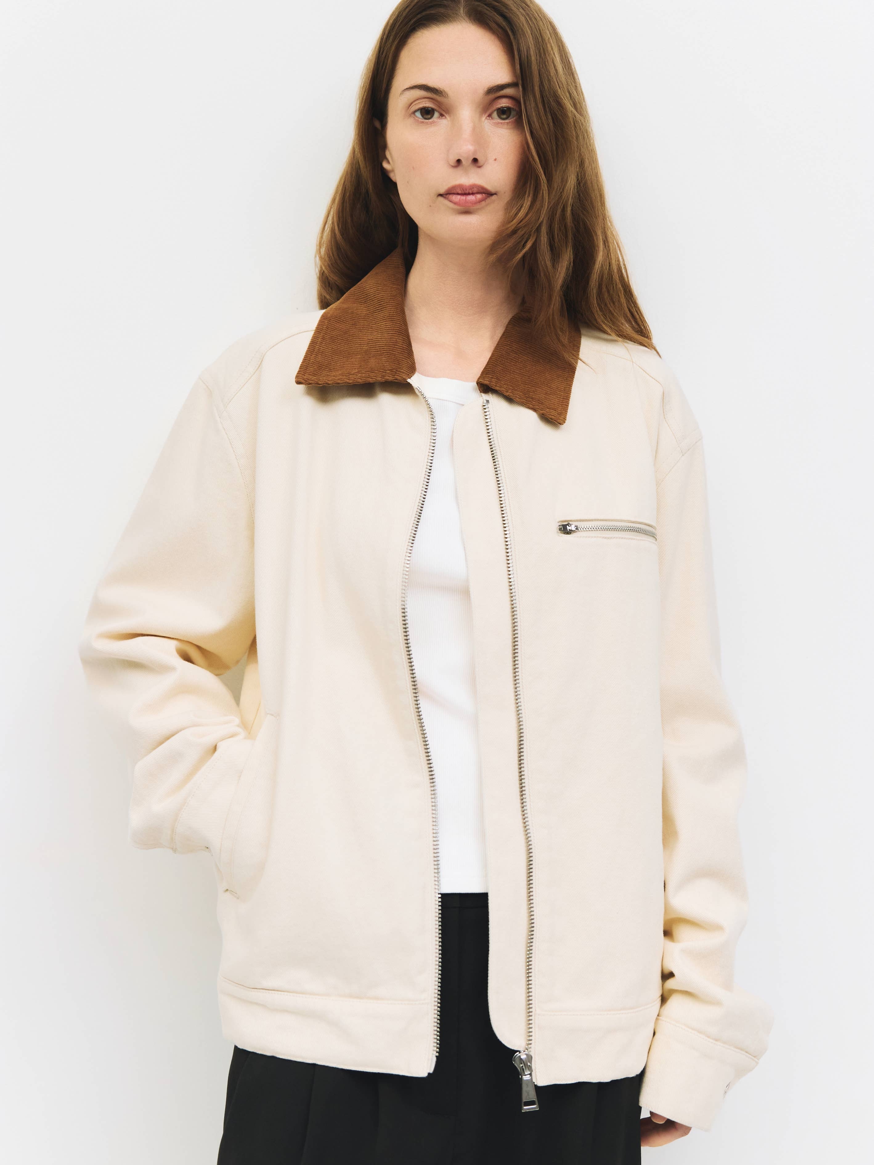 Meet the Calvin Jacket, your new go-to utility jacket for fall. Crafted from durable mid-weight twill with a soft, contrast corduroy collar, it's the perfect on-trend layering piece. This jacket combines a workwear-inspired aesthetic with modern details, making it a versatile and stylish outerwear essential for any contemporary wardrobe.